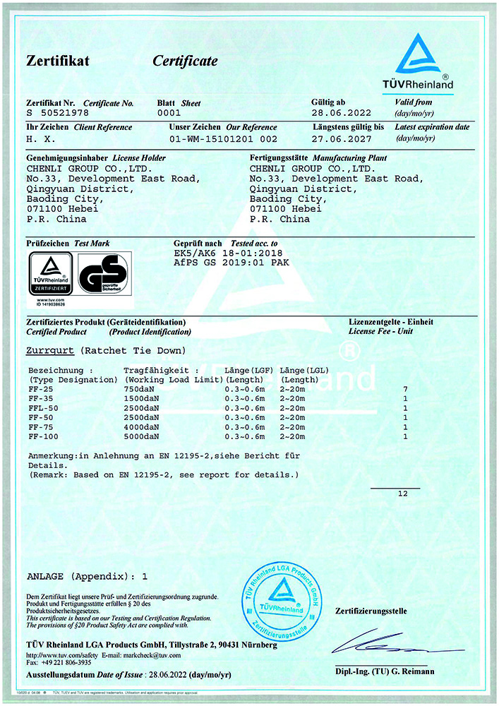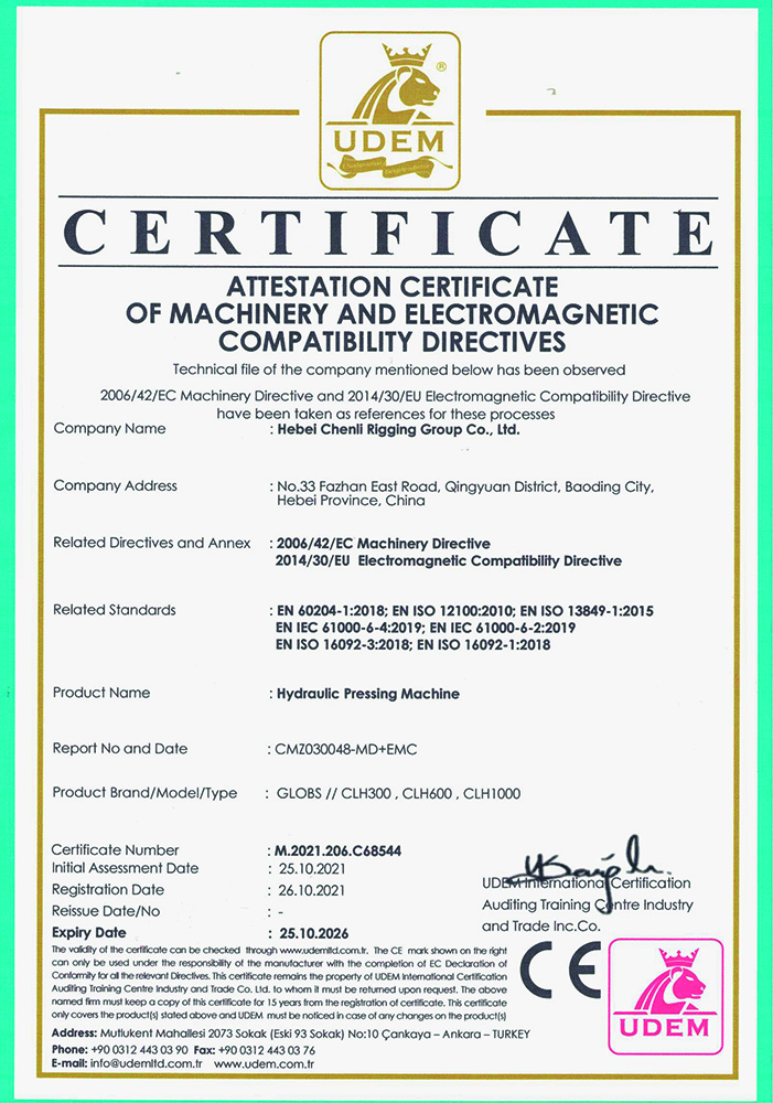 幾年發展“辰力”獲得了ISO9001管理體系、歐共體CE、德國GS、中國船級社等多方認證,這在同行業是不多見的,同時我們每年還有PICC保險公司高達400萬的產品責任險。由辰力產品造成的任何事故責任,在我國任何地方只要撥打95518,人保財險公司就會及時解決。但迄今辰力沒有接到PICC的責任通知和客戶的投訴。自2008年以來辰力集團先后獲得了“起重鏈條”、“ 起重吊裝帶”、“鏈條葫蘆” 、“起重吊索具” 、等貳拾多項國家發明專 利和國家實用新型專 利, 同時辰力獲得《河北省名牌產品》、《河北省著名商標》、《高新技術企業》、《專精特新小巨人》、《國家行業標準起草單位》等多項榮譽和稱號,是全國工商聯五金商會理事單位,并得到央視的認可,辰力牌產品在央視第七套欄目中播出。